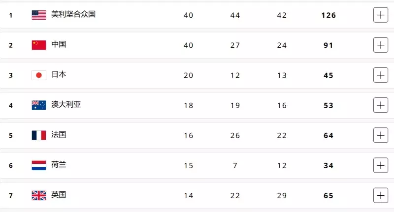巴黎奥运会竞赛循序如故一说念限度,在本届赛事里好意思国和中国均收货了40枚金牌。